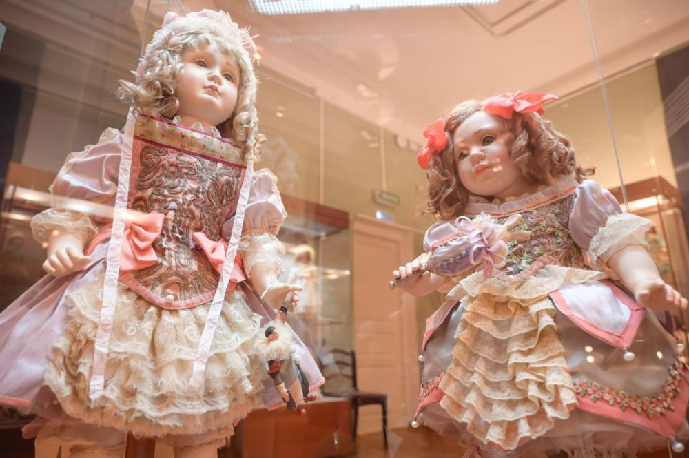 Экспозицию дополняют редкие печатные издания из фондов музея, рассказывающие о былой популярности фарфоровых кукол, а также предметы, демонстрирующие изящество ручного труда при создании кукольных нарядов: старинные швейки, резная костяная шкатулка со швейными принадлежностями и коллекция стеклянных пуговиц.