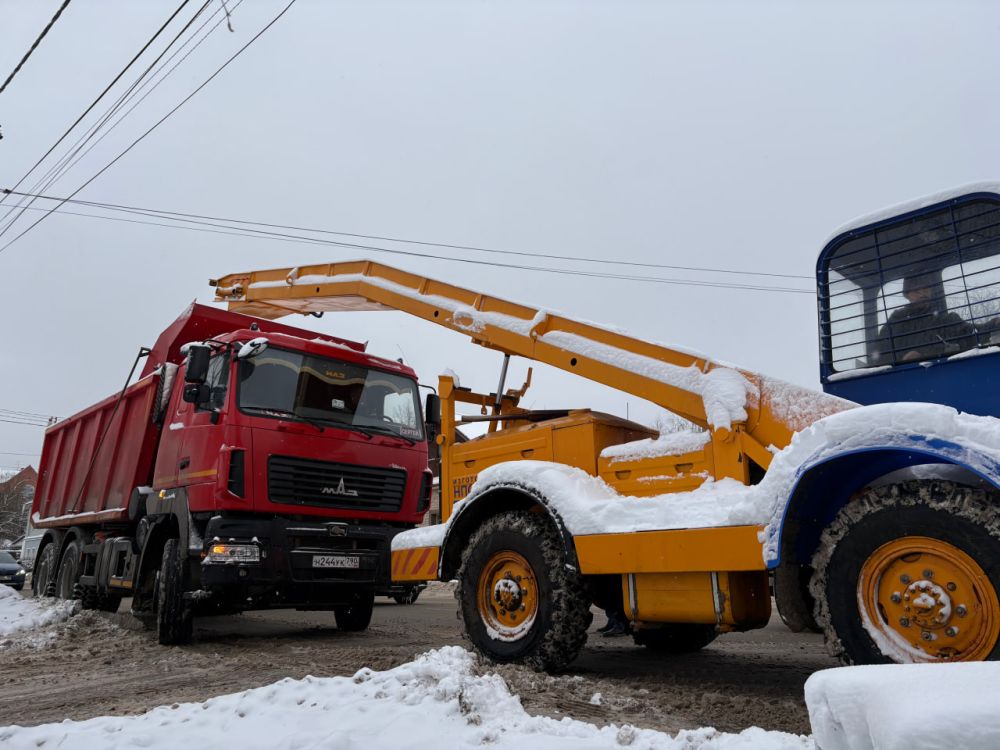 Собранный снег грузят в самосвалы и вывозят на специализированную площадку для его утилизации в деревне Рязанцы.