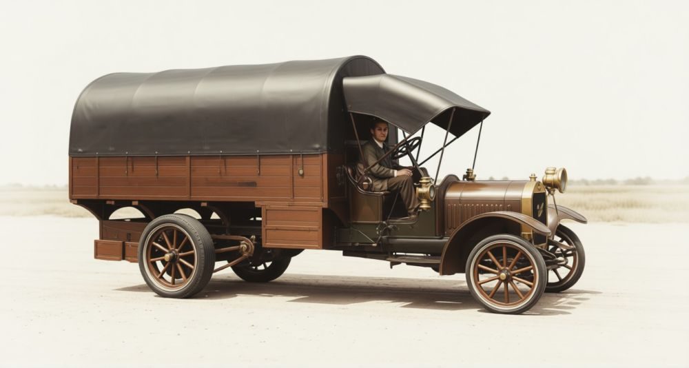 Обнаруженные в одном из архивов документы позволяют предположить, что это произошло в 1910 году, когда «грузовые извозопромышленники», то есть конные возчики грузов, пожаловались городскому старосте (так в начале XX века называли главу городского общественного самоуправления), что их заработок подрывает неожиданная конкуренция со стороны двух грузовых автомобилей, на которых перевозят грузы с железнодорожной станции в торговые ряды и в дома частных лиц.