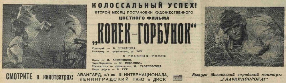 «Конёк-Горбунок» — третий по счёту фильм легендарного режиссёра Александра Роу. И второй из тех, значительная часть которых была снята в окрестностях нашего города. До этого, в 1939 году, в Загорском районе проводили съёмки «Василисы Прекрасной».
