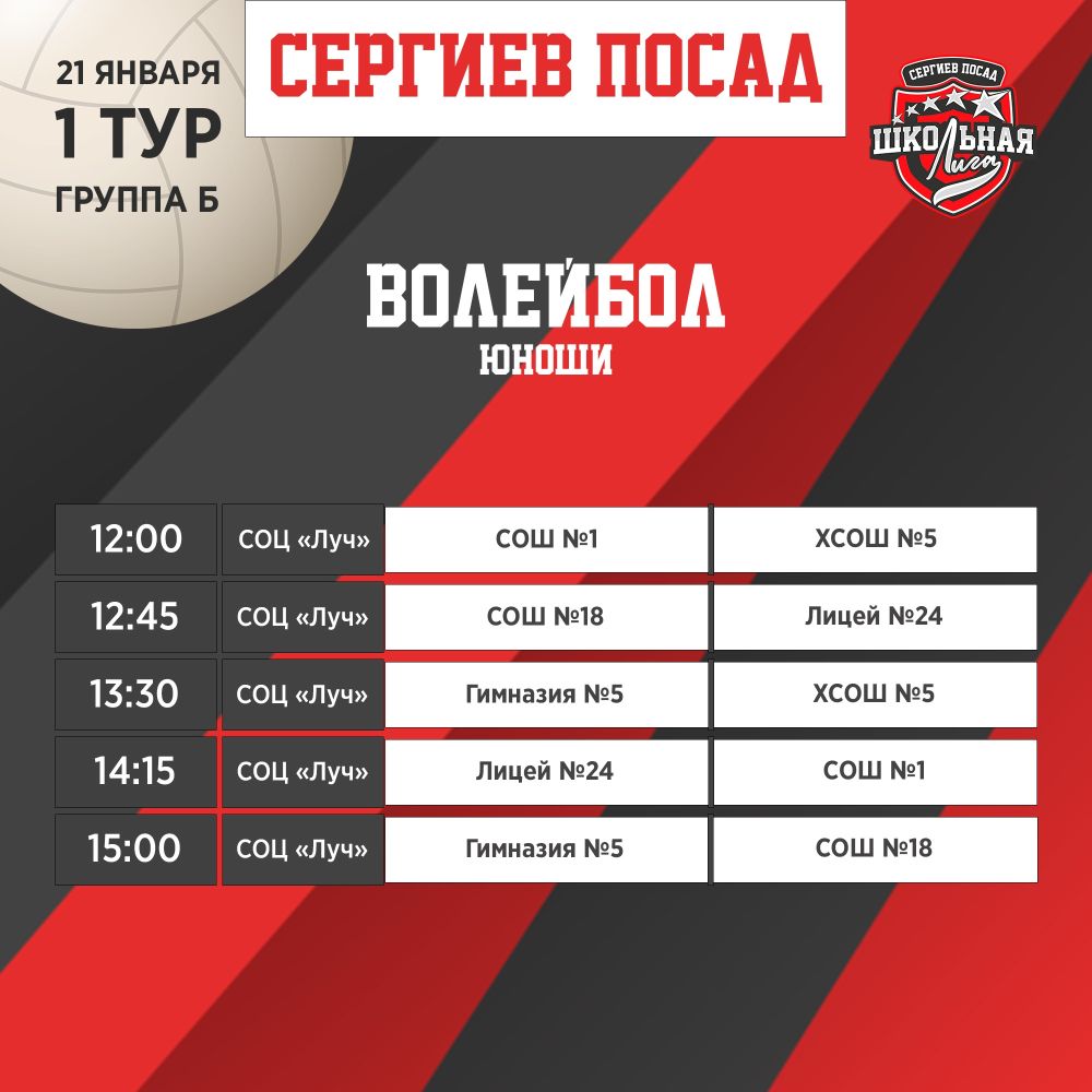 21 января в спортивном комплекте «Луч» состоится финальная игра «Сергиево-Посадской школьной лиги» по волейболу