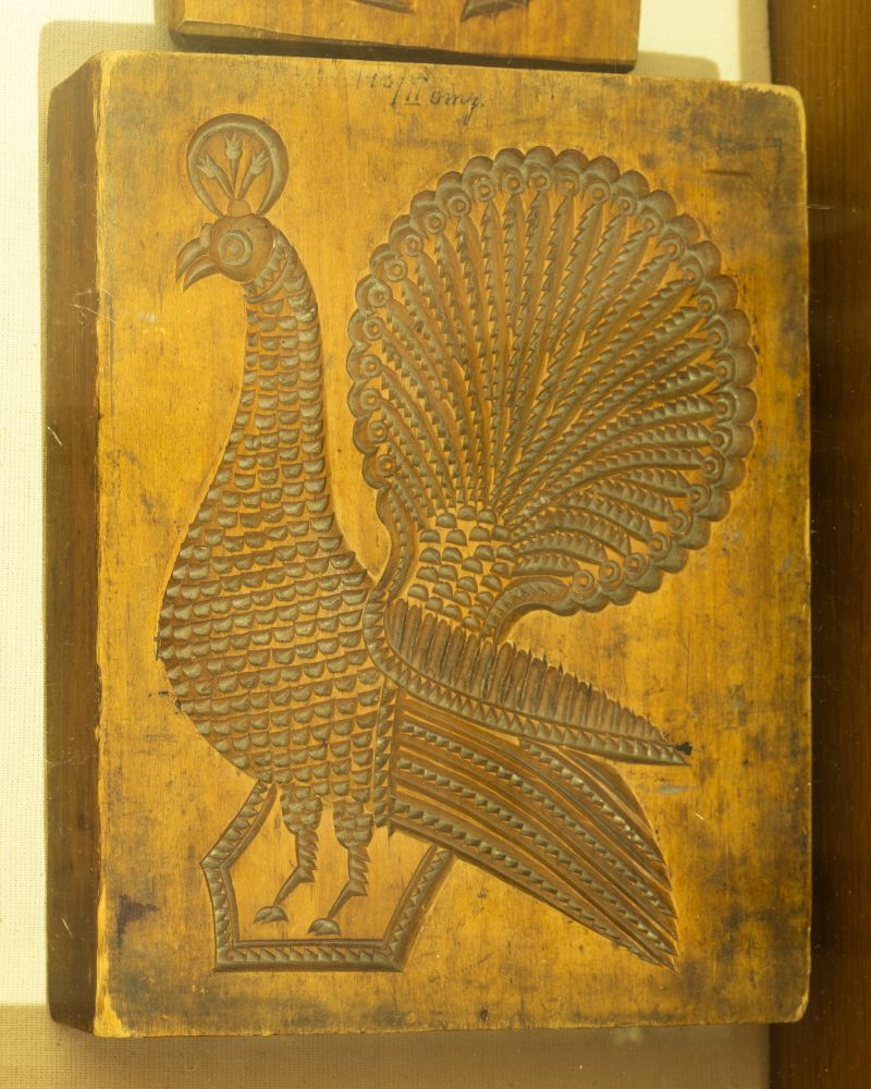 В одном из залов экспозиции «Мир русской деревни», расположенной в музейном комплексе «Конный двор», можно увидеть деревянную форму с изображением петуха для изготовления праздничных пряников (1870 г.), принадлежащую пряничнику Коробову из с. Хлыновка Вятской губ.