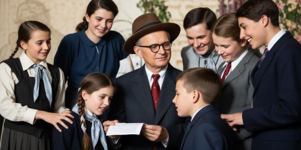 Директор школы А. Уваров и ученики