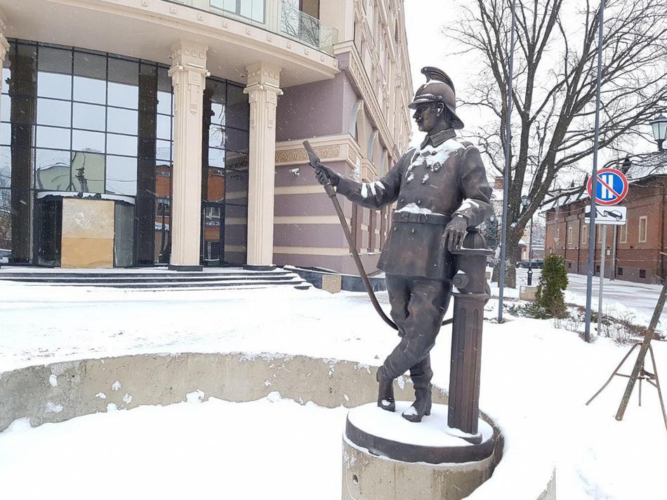 В Пожарном переулке (том, что проходит параллельно улице Карла Маркса) появился памятник Пожарному. Скульптура украсит пешеходную зону, которая откроется вcкоре, и напомнит, что некогда рядом располагалось пожарное депо.