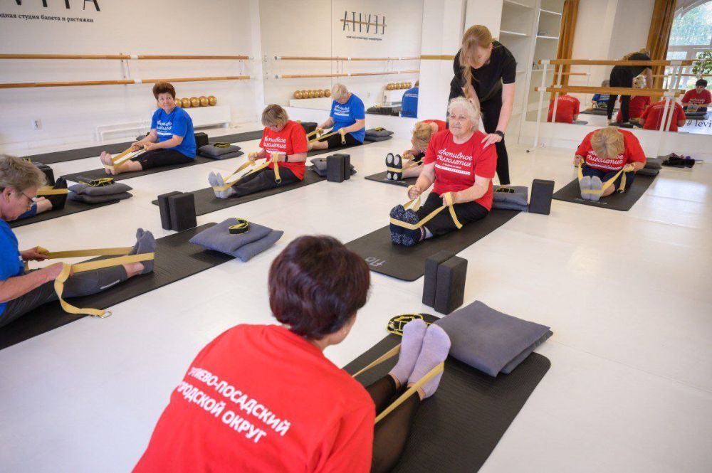 Участницы губернаторского проекта «Активное долголетие» пришли в студию стретчинга, чтобы освоить еще один вид активности — растяжку.