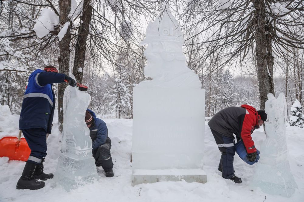 История во льду: возле ДК в Реммаше установили ледяную скульптуру