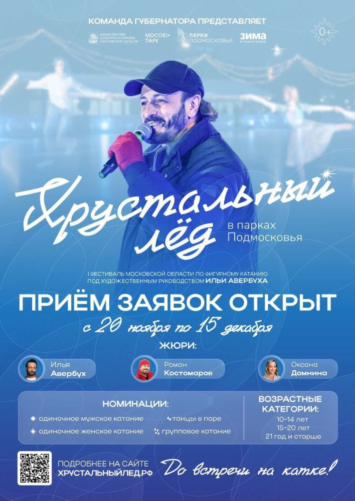 15 декабря заканчивается приëм заявок на участие в первом областном фестивале по фигурному катанию «Хрустальный лëд» под художественным руководством Ильи Авербуха