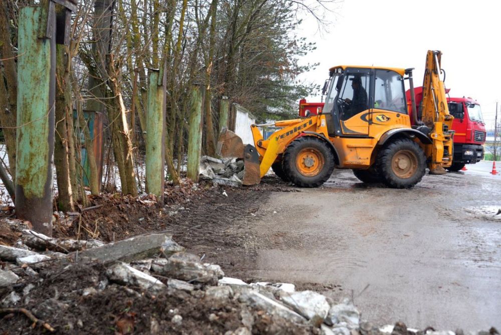 Остатки бывшего общего бетонного забора на Ферме начали сносить