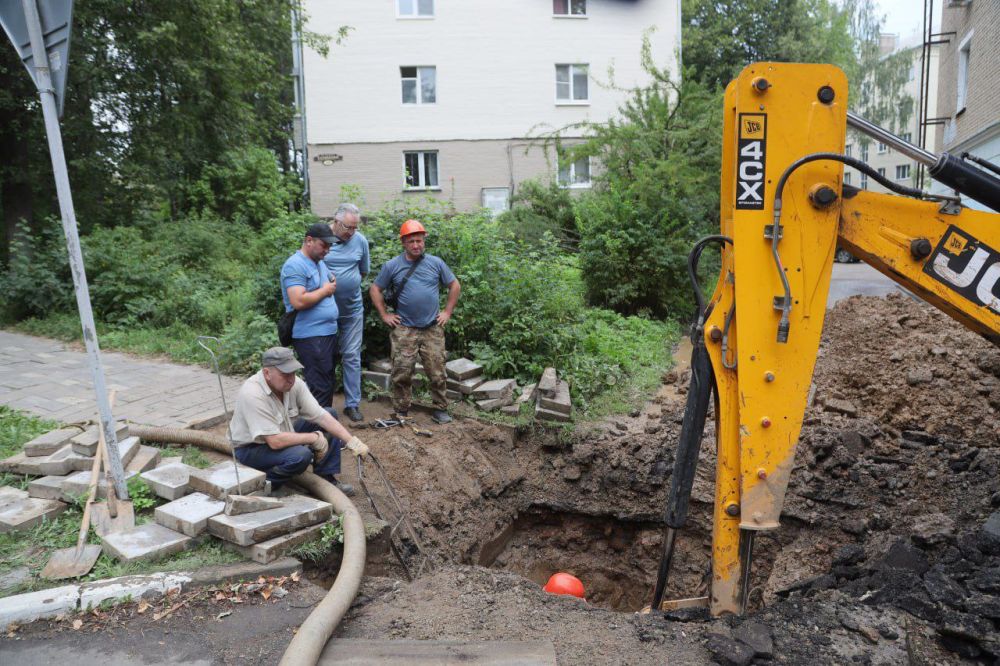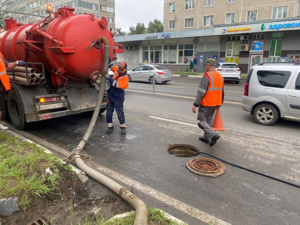 Аварийные бригады «Водоканала» устраняют обвал канализационного коллектора на ул. 40 лет Октября в Сергиевом Посаде